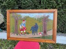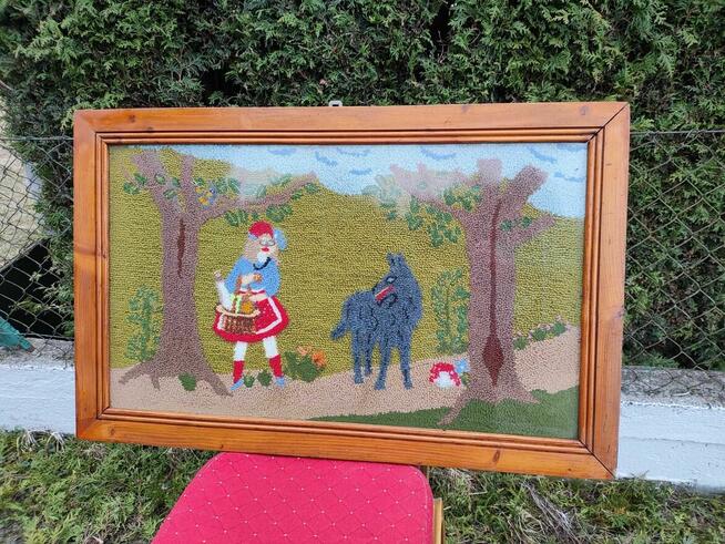Obraz Ręcznie Wyszywany robiony obrazek Gobelin Gobelin Czerwony Kapturek Wilk, duży obraz w drewnianej ramie. Wymiary ...